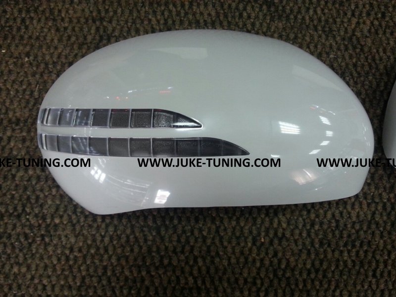 Накладки на зеркала для Nissan Juke с LED поворотниками. Устанавливается в замен штатных. Под покраску.